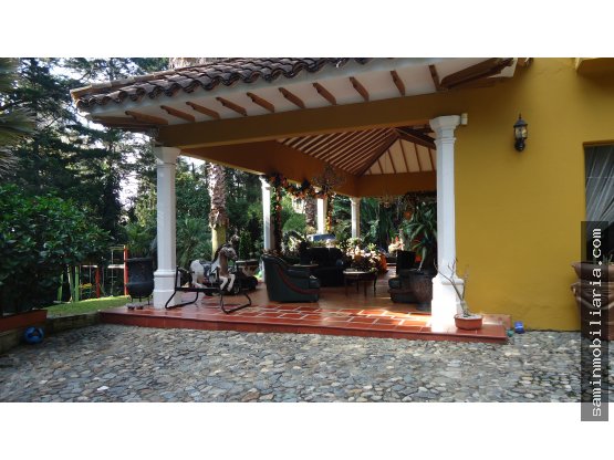 - Venta casa Medellín Pobaldo Los Balsos. Es una casa en lote independiente de 2.228 metros cuadrados y una construccion de 900 metros distribuido en dos niveles. En el primer nivel tiene dos alcobas con baño y vestier, una sala grande y biblioteca, comedor amplio, cocina integral muy bien dotada, alcoba de servicio para dos empleadas y terraza cubierta con salida a una hermosa zona verde que rodea toda la casa. Además la casa tiene en su zona verde kiosco, juegos infantiles y dos quebradas que rodean la casa por dos costados. La segunda planta tiene cinco alcobas amplias con vestier y baño y otra biblioteca. Los techos son elevados con hermosos acabados, pisos en marmol. zona de parqueo para aproximadamente 8 vehiculos. La casa se encuentra en una exclusiva zona de la Loma de los Balsos rodeada de exclusivas casas. Esta vivienda es ideal para una familia grande o una empresa.